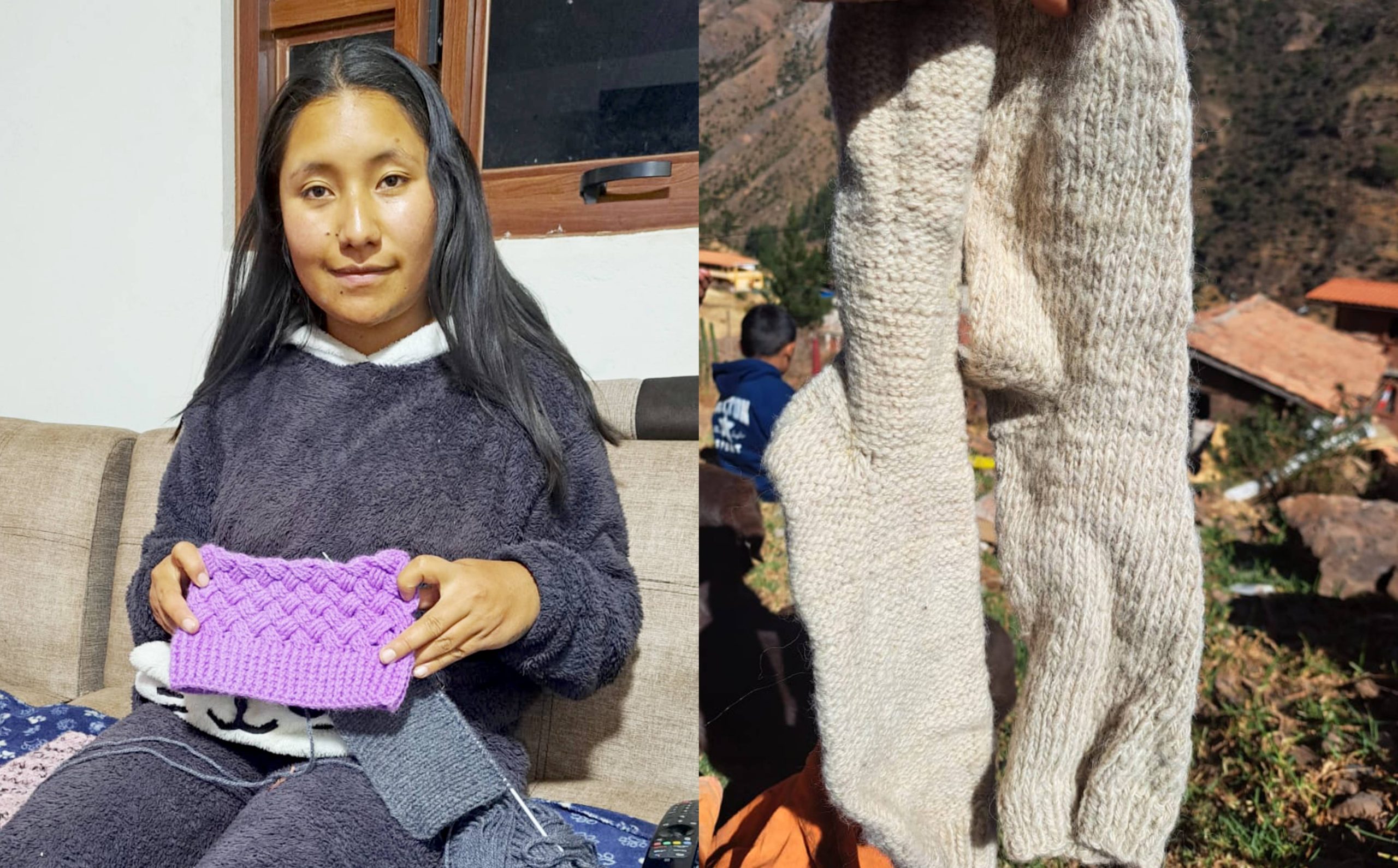 “Tejer para mí es un don maravilloso porque mediante el tejido se puede expresar tradiciones, y también es un pasatiempo relajante. Mi madre y mi abuela me motivaron a aprender este maravilloso arte. Una de mis metas es iniciar una tienda de ropas tejidas a mano y artesanías», indica la joven, quien elabora, entre otras prendas, los chumpis: fajas de lana de oveja e hilos de colores entrelazados, con diseños que representan la agricultura, ganadería, la flora y fauna de la comunidad campesina; que los pobladores usan alrededor de la cintura.